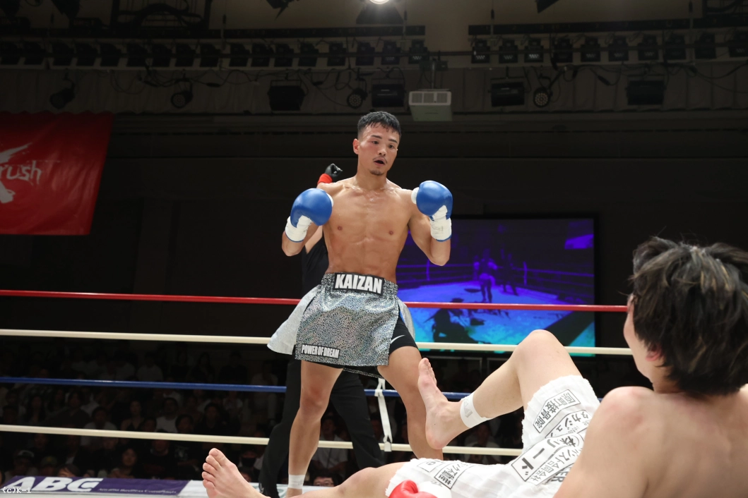 2R、前に出る井上に合わせて藤田が左フック。藤田は動きを止めない藤田を左ミドル、左ジャブでけん制し、足を止めるタイミングで左ボディ。井上は踏み込んで右ストレートを繰り出し、打ち終わりにバックステップ。ラウンド終盤にワンツーをヒットさせ藤田からダウンを奪う。