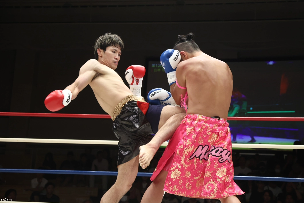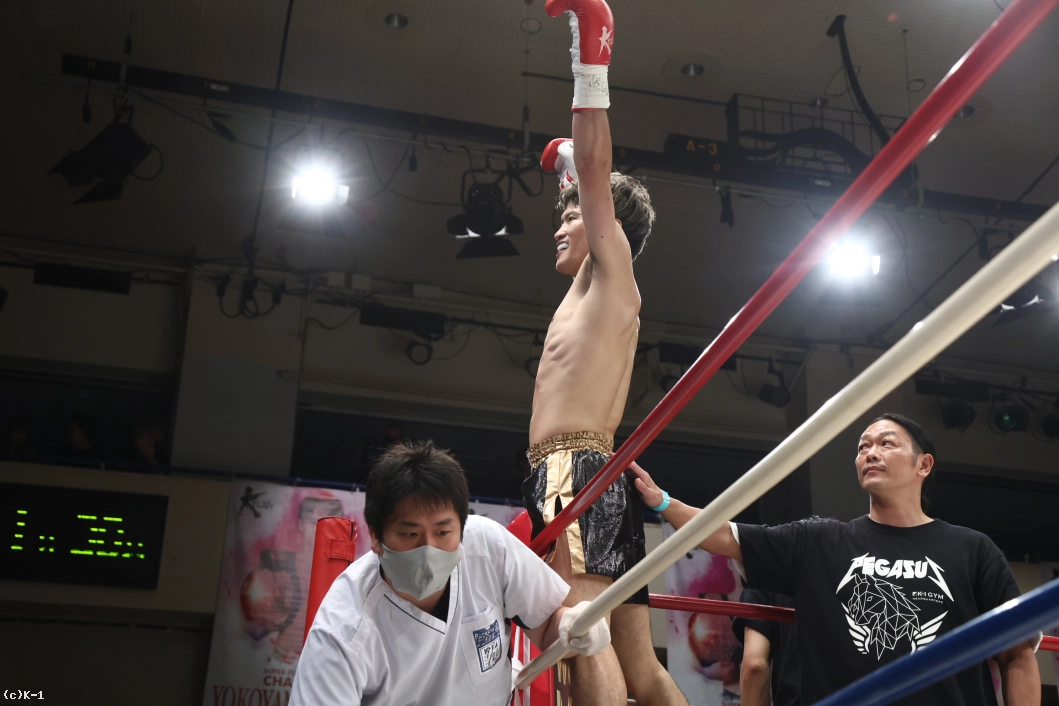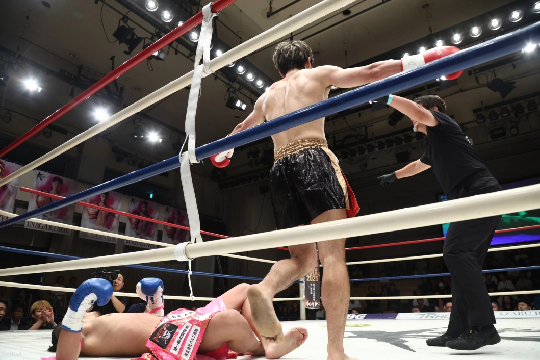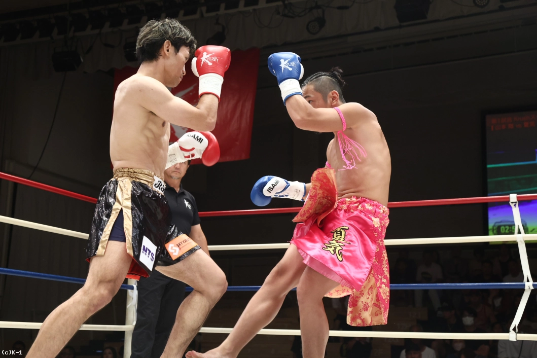 2R、圧力を強める夏気。山本は夏気の入り際に右カーフ、左ミドルと的確に攻撃を当てる。夏気は被弾しながらも前身しワンツー。山本はロープ際で夏気の右ストレートにカウンターを合わせ、右フックでダウンを奪う。レフェリーはカウントを取らずに試合をストップ。山本が鮮烈な一撃KOで大会に火をつけた。