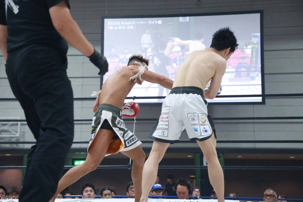 第5試合はKrushKrushスーパー・ライト級。龍はK-1アマチュア全日本大会を制してプロとなった、AJKN日本スーパーライト級の新人王。町分は正道会館の全日本大会を2018・2019・2021と制しデビュー戦を迎える