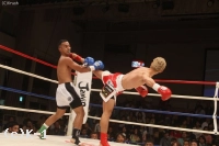 3R、山崎は右ストレートを当てて突進。カナベラルも蹴りを空振りさせて左フックを当てる。お互い距離が合わず、クリンチが多くなってしまう両者。終盤、山崎は右ストレート、顔面前蹴り、右ハイキックと手数を増やすが、カナベラルを仕留めきれず。判定勝利ながら、山崎が3度目の防衛に成功した。