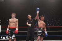 3R、右ストレートで前に出て奥足ローを蹴る石田。出貝もカウンターの右ストレートを合わせる。石田はボディへのヒザ蹴りと左フックで前に出て、出貝も右ストレートとバックキックで応戦する。このまま試合終了となり、ジャッジ3名との1ポイント差で石田が僅差の判定勝利を収めた。