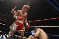 2Rも武尊が猛攻。前蹴りとヒザ蹴りでボディを攻め、さらに重い右ローを蹴り込む。これでプリリップの動きを止めると、右アッパーから強烈な左フックを叩き込んでプリリップがダウン。何とか立ち上がろうとするプリリップだったが、レフェリーが試合を止め、武尊がKO勝利で1回戦を突破した。