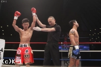3R、左ストレートで前に出ていく瀧谷。ウィリアムスはそこに右フックのカウンターを狙い、右ボディも打ち込む。瀧谷もパンチで打ち合い、そこから左ハイキック。これがウィリアムスの顔面をとらえ、瀧谷がダウンを奪い返す。最後は瀧谷がハイキック、ウィリアムスがパンチで攻める展開となって試合終了。3Rにダウンを奪い返した瀧谷がウィリアムスに逆転勝利した。