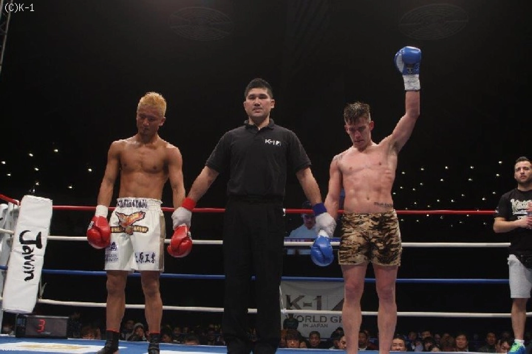 1R、いきなり島野がヒザ蹴りと左フックで前進。エルナンデスは左フックからパンチをまとめて右ロー、右ハイ、左フックと一気に手数を増やして前に出る。島野も左ハイキックから左フック。エルナンデスは左フックを効かせると左ボディからボディにヒザ蹴りを突き刺してダウンを奪う。