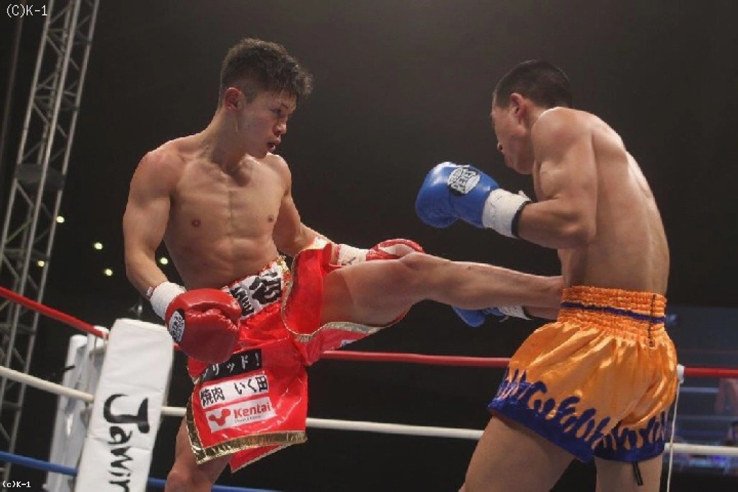 1R、サウスポーの瀧谷がグルグルと回ってインローと左ミドル。そこから左ストレートにつなげて、返しの右フックでダウンを奪う。再開後も瀧谷は左ミドル・左ストレートからパンチを連打して攻め込む。