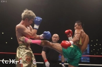 2R、左右田は圧力を増してゲーオをロープに詰めんとするが、するとゲーオは左フックを強振して左右田を下がらせ前に出てくる。しかし左右田も応戦し、前蹴りとストレートでゲーオを再びロープ際まで追い詰める。だが、するとゲーオはジャブを突きながら出てきて、リング中央に戻ると左ハイキック、左ミドル、左右田の前進に合わせたボディへのヒザ、左ストレートと決める。そしてなお左右田が出てきたところにジャブからの左フックを打ち込みダウンを奪ってこのラウンドを終える。