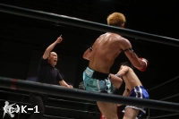 そして2R開始早々、上田の右ローで前田がダウン。何とか立ち上がる前田だったが、上田がローを集中砲火。これで前田を蹴り倒し、上田が見事なKO勝利でデビュー戦を飾った。
