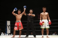 1R、サウスポーの瀧谷はぐるぐるとリングの中を動き、蹴りのフェイントから右フック・左ストレートで飛び込む。良輝はインローと前蹴り、瀧谷はサイドに回り込むように左ストレートとハイキックを飛ばす。終盤、瀧谷は良輝の前足にローを集め、良輝も右ミドルを蹴り返した。