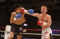 3R、完全にペースを掴んだ朝久は前蹴り、左ミドル、ハイキックで猛攻。手数で圧倒し、翔也を攻め続ける。このまま朝久が押し切るかに思われたが、翔也が左ボディから顔面への右フック。左ハイキックからパンチをまとめると左フックで朝久をぐらつかせ、最後は右フックを一閃。この一発で翔也が逆転KO勝利を収めた。