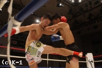 3R、朝久は前蹴りで距離を作って、パンチとヒザ蹴り。伊澤はそれをブロックして右ロー、片手で朝久の首を押さえてローを連打する。手数が減る朝久だったが必死に左右のフックを返して応戦する。本戦判定はジャッジ3名とも29-29と差をつけず、試合は延長戦へ。