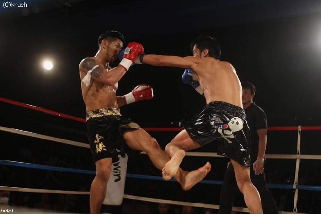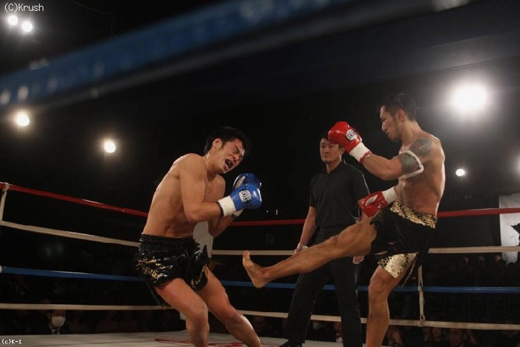 2Rも小鉄がジャブから左右のロー。前蹴りとヒザ蹴りでボディも効かせ、右ローからハイキックにつなげる。何とか立ち続ける長谷川だったが、小鉄がパンチのコンビネーションから右ローにつなげ、これで長谷川が崩れ落ちるようにダウン。小鉄がローキックで長谷川をマットに沈めた。