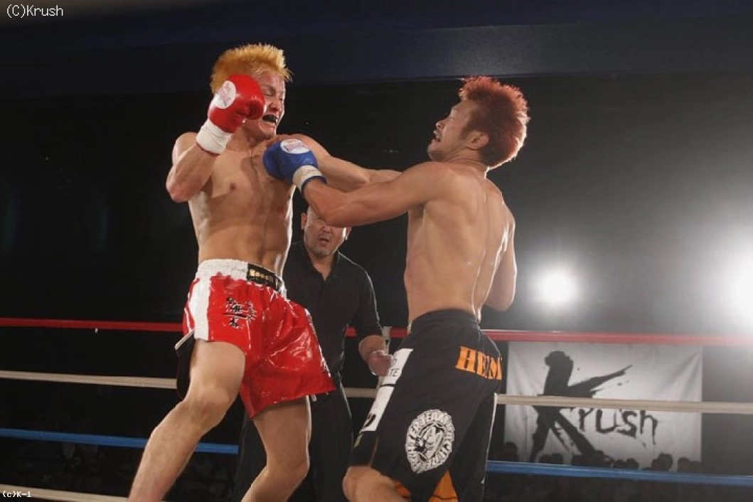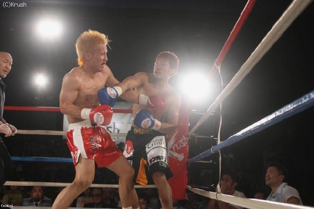 2R、インローと右ミドルを蹴る本村。原田は蹴りにパンチを合わせて前に出ていく。ここで打ち合いになり、本村が右フックをヒットさせてダウンを奪う。再開後、原田は左ハイキックと左ストレートで前進。終了間際に右ストレートを当ててダウンを奪い返す。