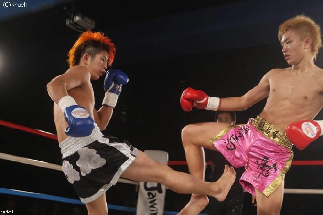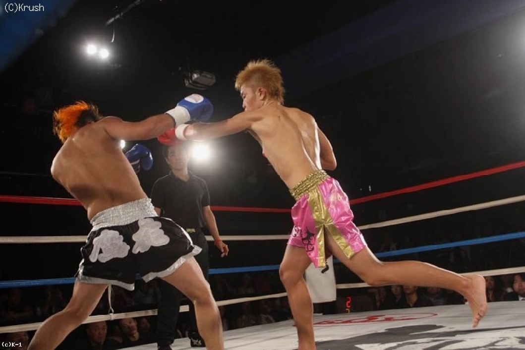 1R、お互いにサウスポーの両者、西京はインローと右ミドル。リョウタもインローを返す。西京はリョウタのローにジャブを伸ばして左ストレート。リョウタも西京のミドルに左ストレートを合わせる。右ミドルと前蹴りで前に出る西京はジャブを当てて左ミドル、リョウタも左ストレートを返してバックブローを狙う。西京はパンチで前に出るリョウタにカウンターの左ハイキックを合わせる。西京の蹴りがローブローとなり、試合が一時中断。再開後、リョウタの方が一気にパンチで前に出る。
