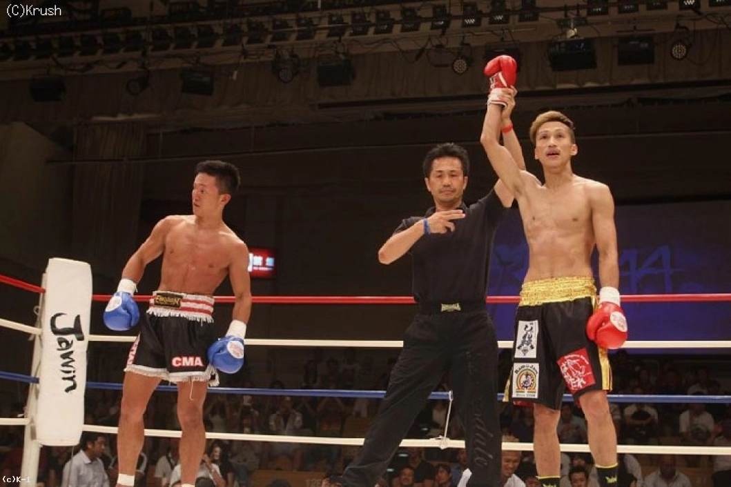3R、結城が左フックから右ストレート、闘魔もジャブで距離を測って右ストレートを打つ。ジャブ・前蹴りをもらっても前に出る結城。闘魔もワンツーと前蹴りで迎え撃つ。結城のローに闘魔が右ストレート、右を振って前に出る結城が終了間際に右ストレートを当てる。判定2-0で闘魔がKrush初勝利を挙げた。