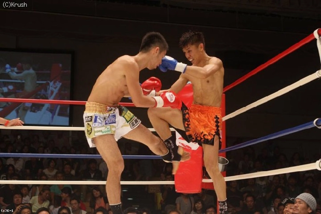 3R、堀尾がワンツーで前進。伊澤は右ローを蹴ると、今度は奥足に左ローを連打する。距離が詰まると伊澤はボディにヒザ蹴り、これで堀尾を下がらせる。必死に耐える堀尾に伊澤は徹底したボディ攻め。堀尾も右ハイキックや左フックを返し、伊澤も右フックを連打する。ジャッジ1名がドローとしたものの、判定2-0で伊澤が堀尾を振り切った。