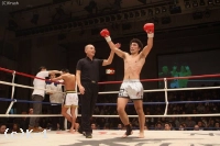 1R、いきなり両手を下げて構えるNOMAN。塚越はジャブを伸ばして右ローを蹴る。構えを戻したNOMANは左手を伸ばしながら前に出る。塚越は前蹴りで距離を取ろうとするが、そこにNOMANが右フックを合わせてダウンを奪う。再開後、NOMANはバックブロー、ロープに詰めて右ボディ。残り30秒、右ローから右フックを打ち込むが、塚越も何とかラウンド終了まで持ちこたえる。