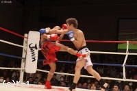 1R、細かくフェイントを入れながらローを蹴る山内。中島はパンチのコンビネーションから右ローにつなげる。じりじりとプレッシャーをかける中島が飛びヒザ蹴り、そのまま山内をコーナーに詰めて連打をまとめる。ヒザ蹴りとローで押し返す山内。中島はヒザ蹴りでパンチで前に出るが、そこに山内が右ストレートを合わせ、ダウンを奪う。