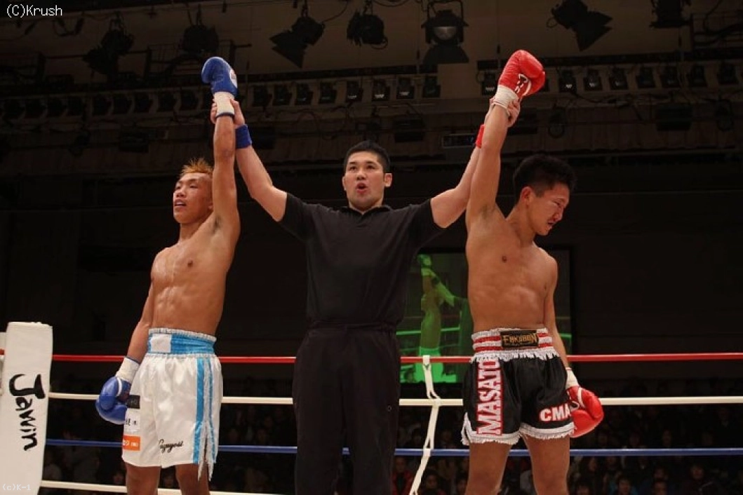 判定はジャッジ1名が29-28で結城を支持したものの、残り2名は28-28、28-28のドローとした。(結城=勝ち点1、Kazyosi=勝ち点1)