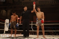 3R、両手で「来い!来い!」と挑発してパンチで打ち合おうとする隆聖。大高もそれに応じ、パンチからローにつなげる。しかし隆聖が大高をコーナーまで詰めてパンチとヒザ蹴りのラッシュを見せる。猛攻を見せた隆聖だったが、ダウンのポイント差で大高が勝利した。