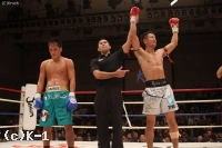 延長R、一気にラッシュを仕掛けた阿佐美。守屋はそれを耐え凌ぎ、右ローで徐々に阿佐美の動きを止める。前に出続ける阿佐美。守屋がそこに右ローと左ミドルを蹴るという展開で試合終了となった。判定は2‐1と割れたものの、守屋が勝利。王者・城戸への挑戦権を手にした。