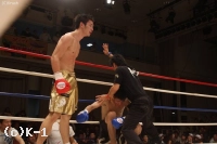 3R、お互いにパンチからヒザ蹴り。近藤が松倉を下がらせてヒザ蹴りにつなげる。松倉はジャブを突いて右ボディストレートと左フック。近藤はパンチからヒザ蹴り、そして飛びヒザ蹴り。松倉も飛びヒザ蹴りを返す。近藤がバックブローを打つと、松倉はヒザ蹴りを狙う近藤にパンチを狙う。判定は30-30、30-30、29-29と差がつかずにドロー。延長戦へともつれる。