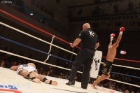 何とかインターバルまで耐えた東本だったが、足元がおぼつかない。3Rに入ると卜部がパンチで攻め込み、東本がクリンチで逃げようとすると、それを突き放してヒザ蹴りの連打。東本が崩れ落ちるようにダウンし、レフェリーが試合を止めた。