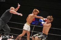 2Rも激しくパンチで打ち合う両者だったが、悠矢の右フックで林がダウン! 立ち上がった林に悠矢は飛びヒザ蹴り、右ストレート、そして右フック! この一発で林をなぎ倒すようにマットに沈め、悠矢がインパクト大のKO勝利! 会場を大いに盛り上げ“team NAGOYA”に1勝をもたらした。