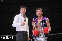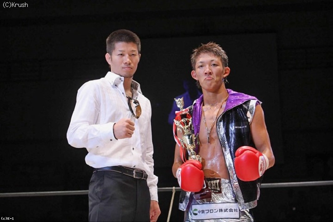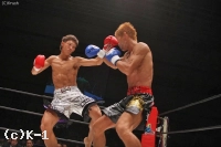 3R、野杁が飛びヒザ蹴りからパンチをまとめる。牧平も左の飛びヒザ蹴り、そして左ロー。野杁も右ローを返し、ローを蹴り合う展開となるが、ここでスリップした野杁の顔面を牧平が蹴ってしまい、牧平に減点1が与えられる。再開後、野杁は左ボディから右アッパー、左フック。下がる牧平に顔面前蹴り、飛びヒザ蹴り、バックキックを当てるが試合終了のゴング。KO勝利こそ逃したものの、野杁が大差の判定勝利を収め、“team NAGOYA”の勝ち越しが決定。試合後は特別プレゼンターを務めた名古屋在住のUFCファイター日沖発から野杁にトロフィーが渡された。
