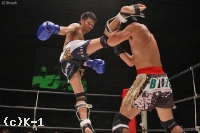 そしてリング中央で足を止めてパンチで打ち合うと、何と左フックの相打ちでダブルノックダウン! 久保坂レフェリーが試合を止めて、両者KOでエキシビションは終了。趣向を凝らしたエキシビションで場内は大いに盛り上がった。エキシビション後、佐藤と大和はそれぞれ「僕には夢があって、それは名古屋をキックボクシングのメッカにすることです。名古屋がそういう土地になるようにみんなで盛り上げていきましょう」(佐藤)、「Krushはカッコいいですね。またKrushのリングにも上がりたいと思うのでよろしくお願いします」(大和)とファンにメッセージを送った。